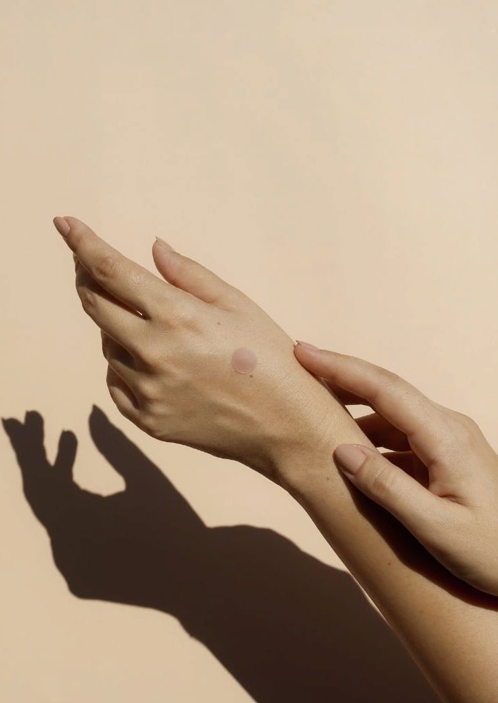 - Appliquez votre protection solaire comme d’habitude et attendez quelques minutes. Dès que le sticker devient transparent, votre peau est correctement protégée.
