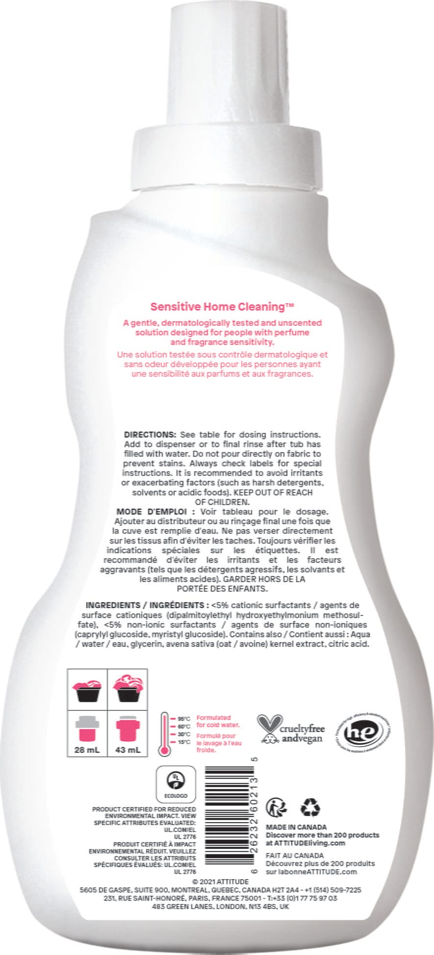 avis en français à propos du produit ATTITUDE Assouplissant Naturel Bébé pour Peau Sensible