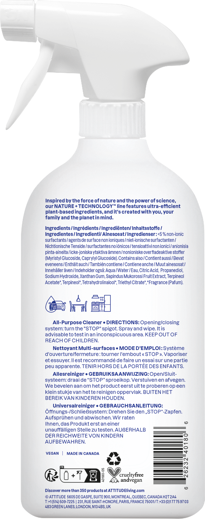 Tous, nous désirons ce qu’il y a de mieux pour notre famille. ATTITUDE propose donc un produit nettoyant naturel et efficace, utilisable sur toutes les surfaces, conçu sans aucune substance polluante cancérigène.