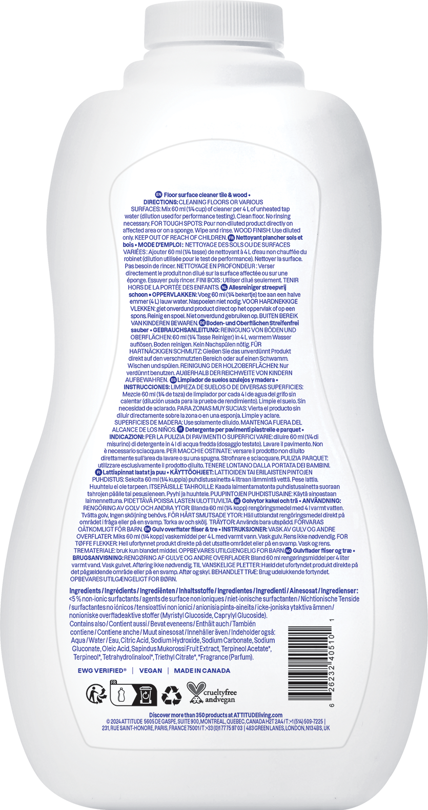 ATTITUDE Nettoyant Sols & Bois, 1,04 L