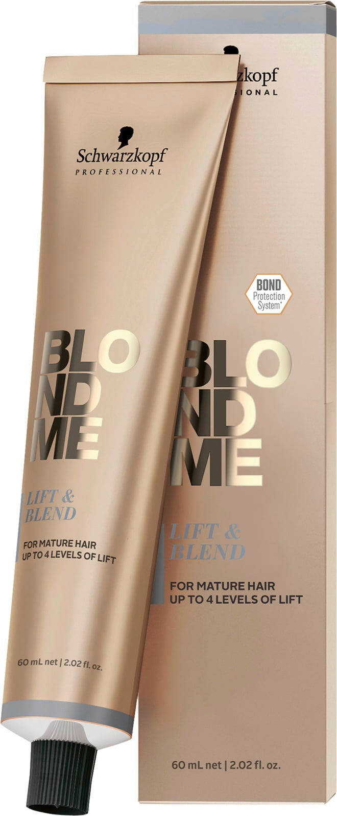 Pour les cheveux matures des clientes qui recherchent un look blond sophistiqué, optez pour le Schwarzkopf Professional BLONDME Lift & Blend, un soin deux-en-un d'éclaircissement et de fondu optimal des cheveux blancs.