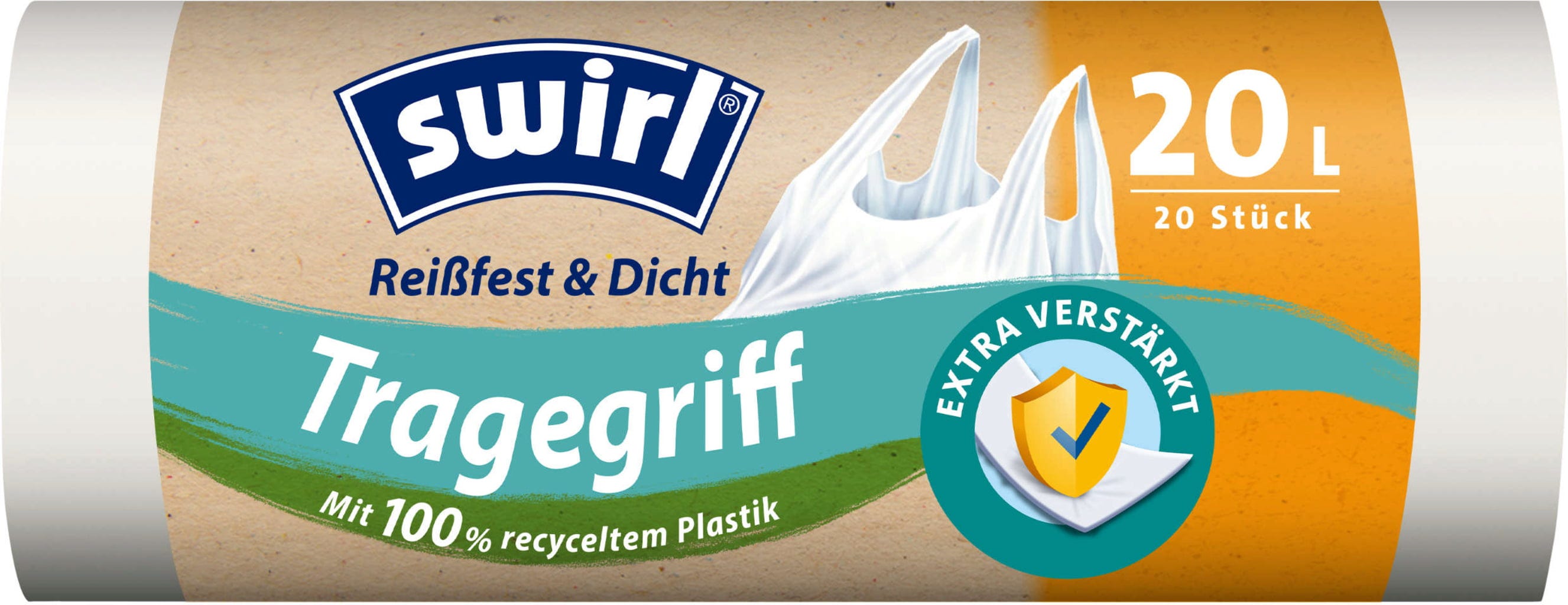 Swirl® Sac poubelle résistant à la déchirure et étanche avec poignée, 20 L (20 pièces)